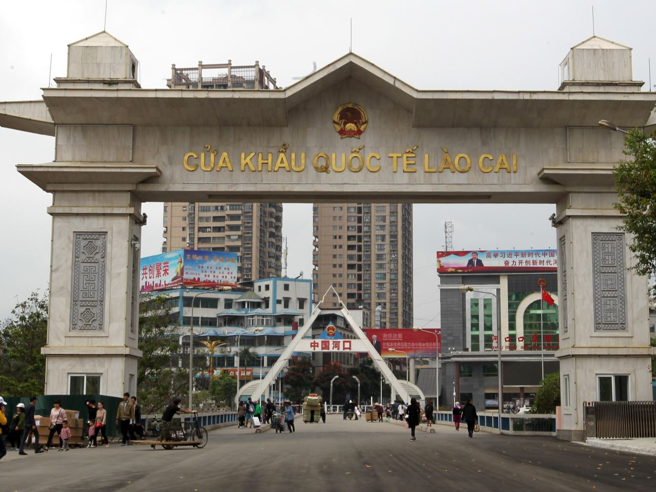 Cửa khẩu quốc tế Lào Cai thông thương qua cầu Hồ (Hồ Kiều) bắc qua sông biên giới Nậm Thi, tới cửa khẩu quốc tế Hà Khẩu (河口口岸), thuộc huyện Hà Khẩu, châu tự trị Hồng Hà, tỉnh Vân Nam, Trung Quốc.